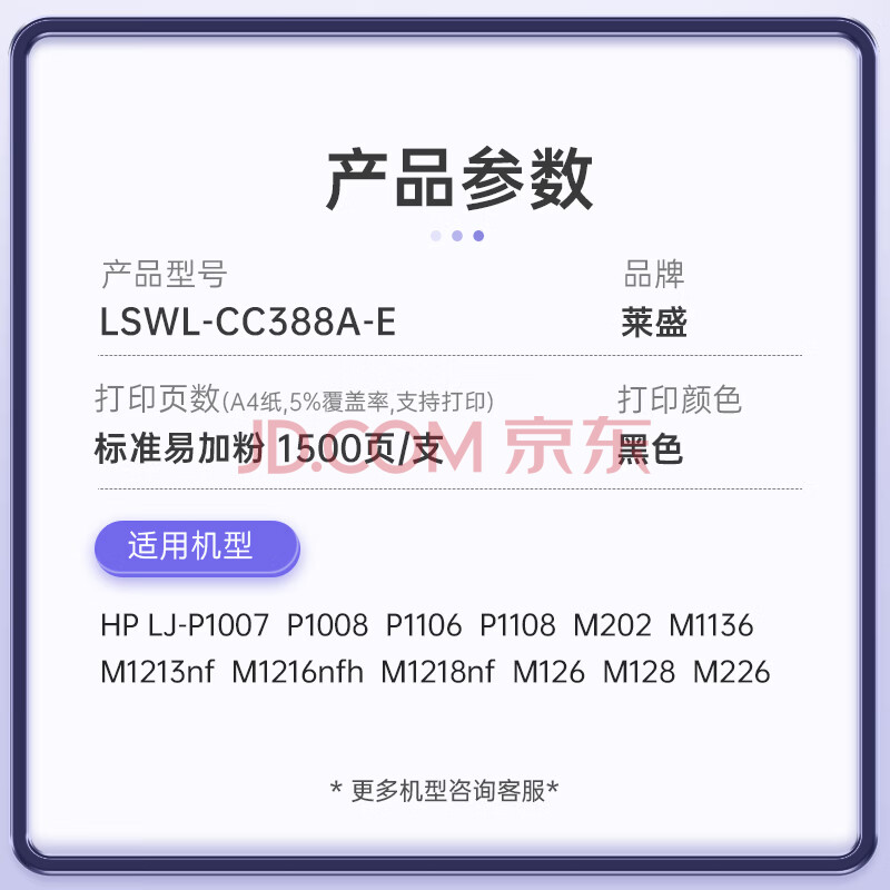 商品相册:莱盛CC388A易加粉硒鼓 适用惠普HP P1007 P1008 P1106 P1108 M1136 M126 M128 粉盒第