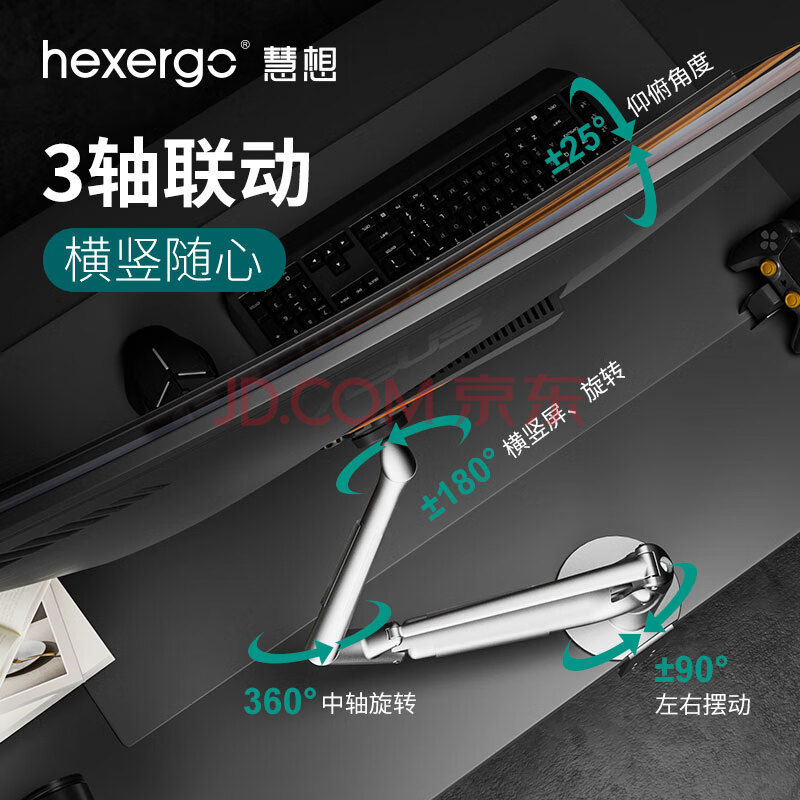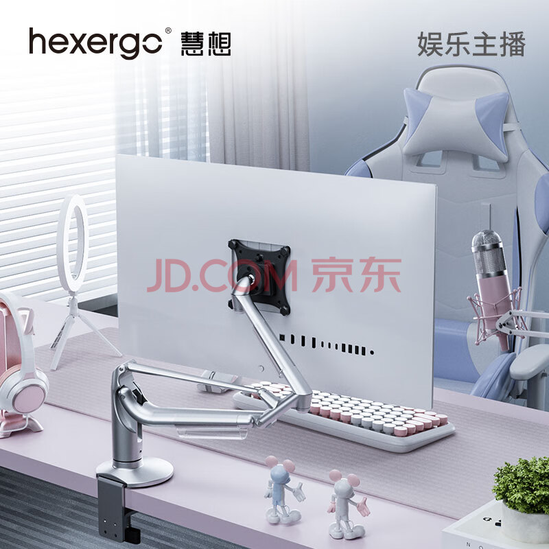 商品相册:慧想 显示器支架电脑屏幕气动悬臂承重10kg升降底座旋转免打孔 铝合金支架 K100辉月银 第