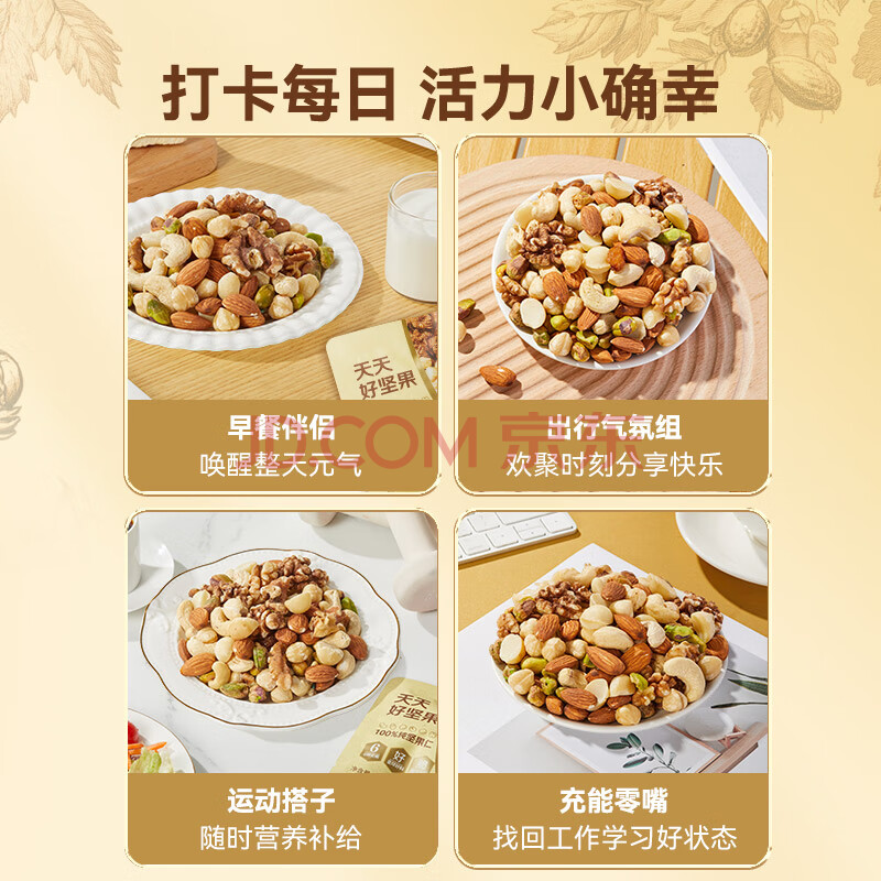 商品相册:京东京造鲜来多 每日坚果100%纯坚果仁750g/30袋 开心果坚果礼盒节日送礼第