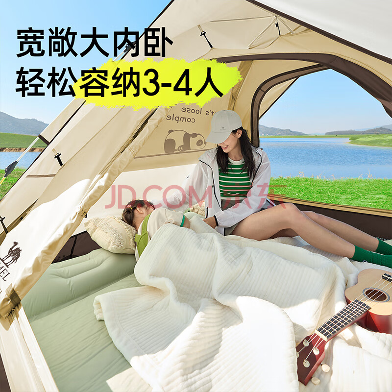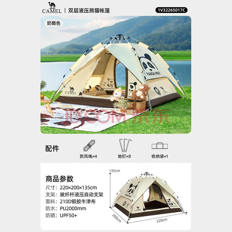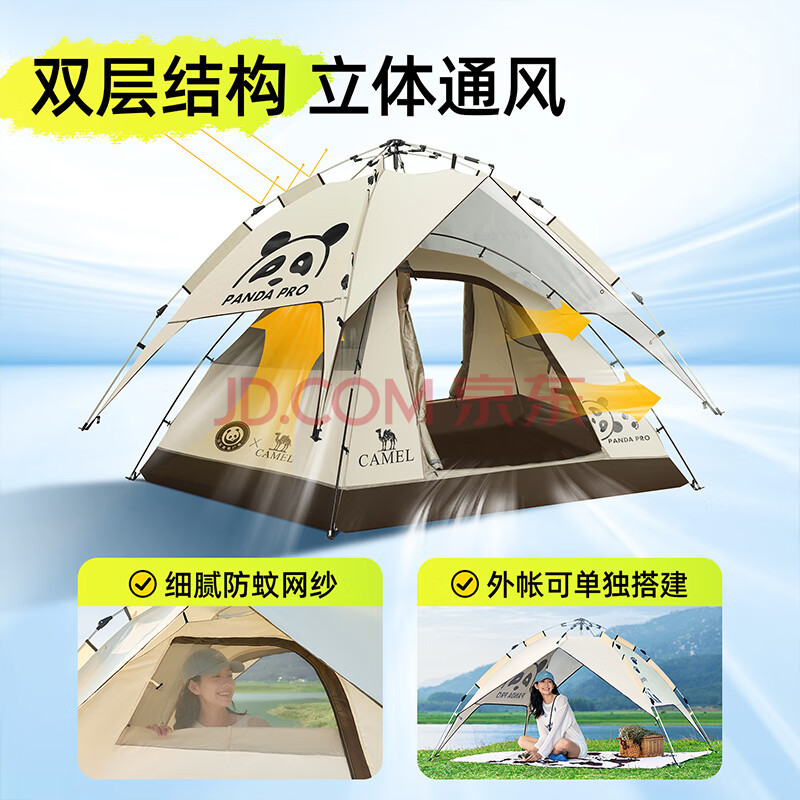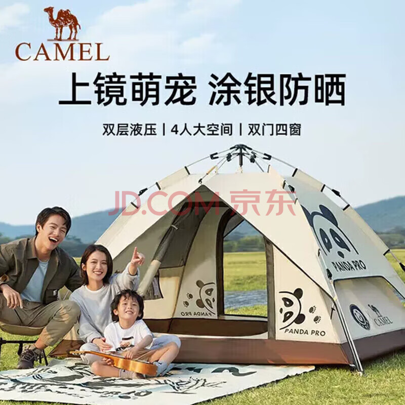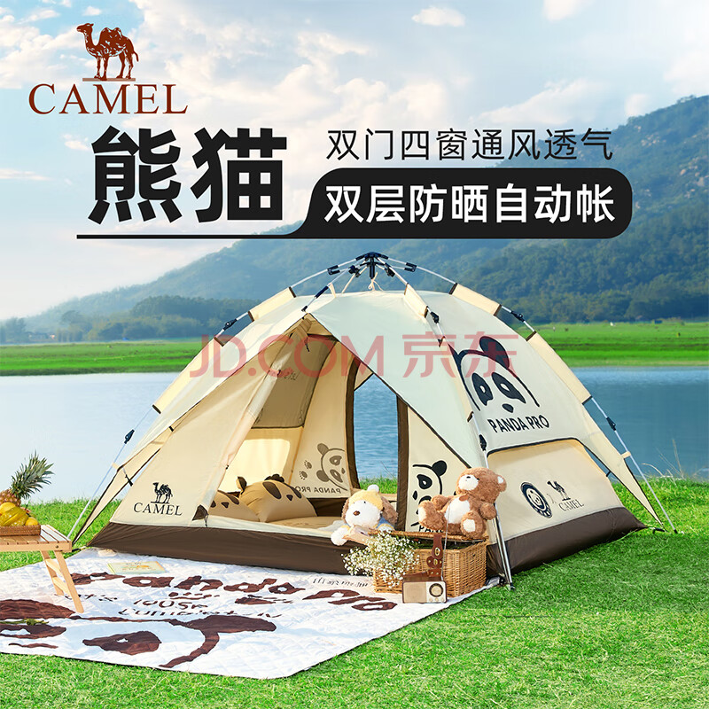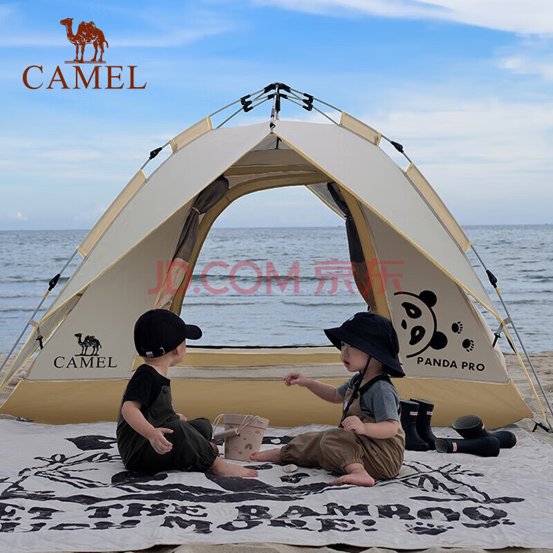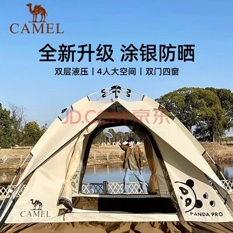 商品相册:骆驼(CAMEL)帐篷户外便携式折叠加厚涂银防雨防晒全自动露营用品 5017奶酪色第