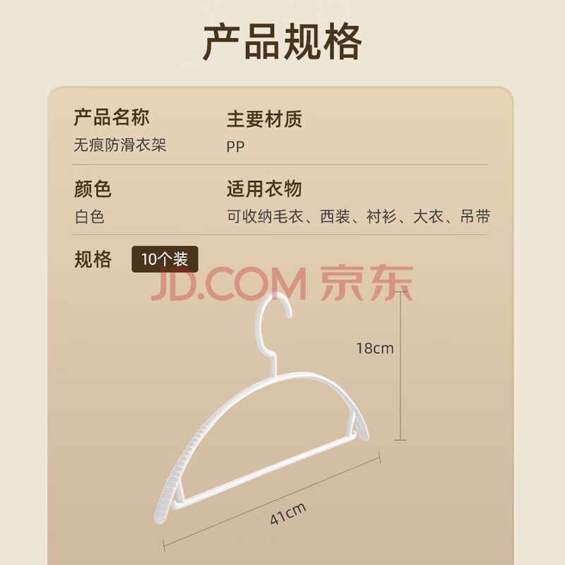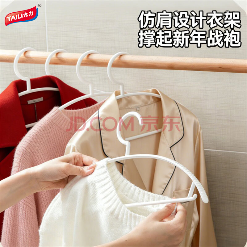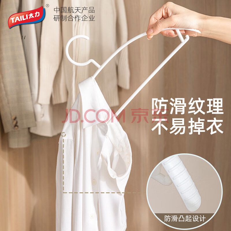 商品相册:太力衣架无痕晾衣架防滑塑料衣挂晒衣服架多功能衣撑子 白色10只第