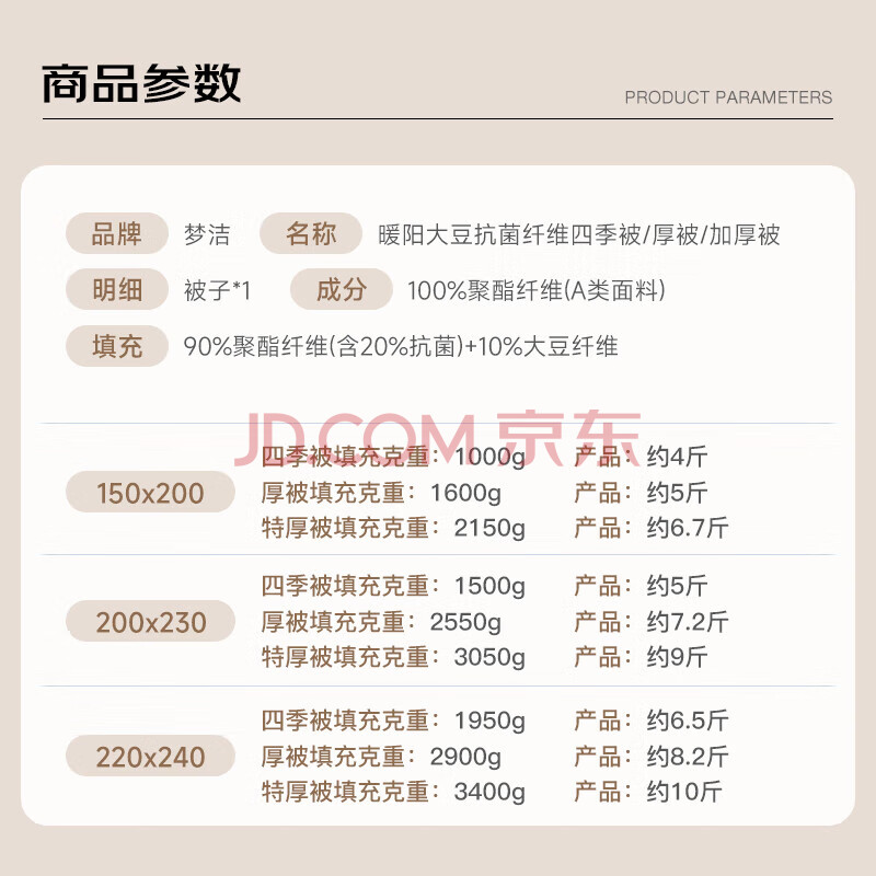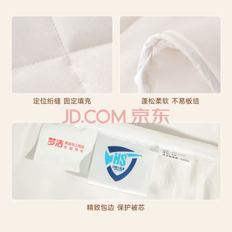商品相册:梦洁家纺四季被子10%大豆纤维被春秋被芯单人抑菌填充物约1950g 220X240cm第