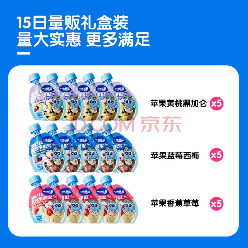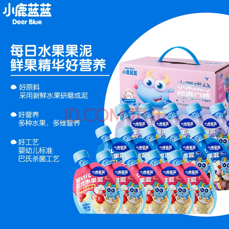 商品相册:小鹿蓝蓝缤纷水果泥多口味 108gX15袋 婴儿辅食幼儿佐餐西梅泥7种水果第1张/共6