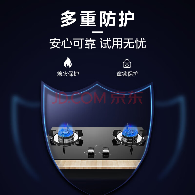 商品相册:美的(Midea)燃气灶(天然气)双灶家用大火力JZT-QTW15嵌入式灶具双眼灶 4.5KW火力第