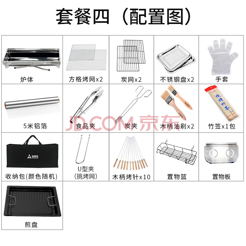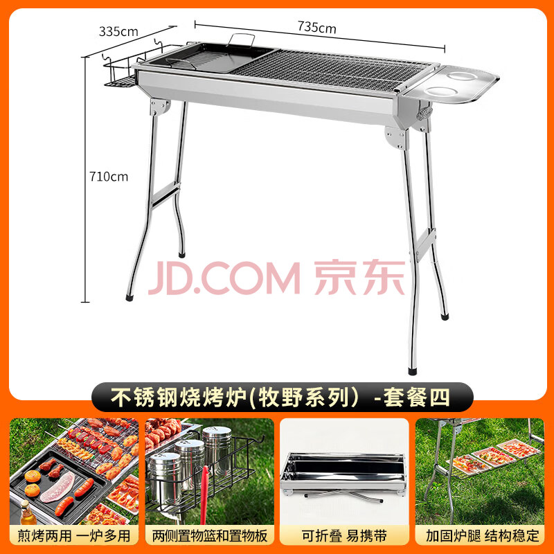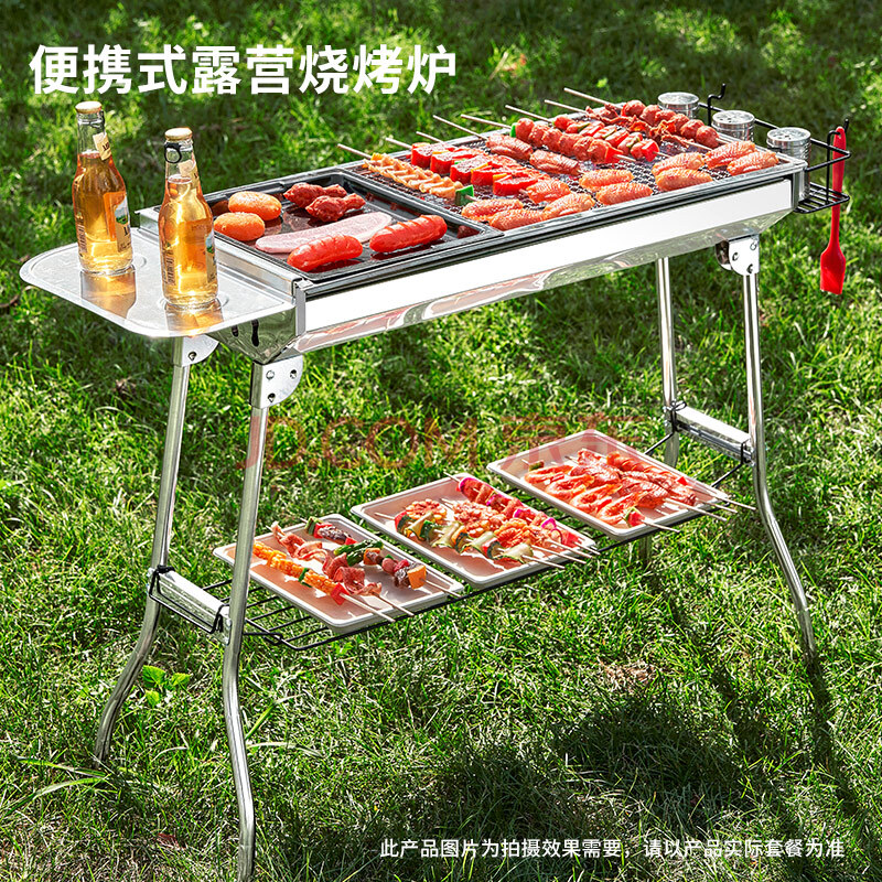 商品相册:尚烤佳(Suncojia)户外不锈钢烧烤炉煎烤两用木炭烧烤架家用便携大号碳烤串炉套餐四第