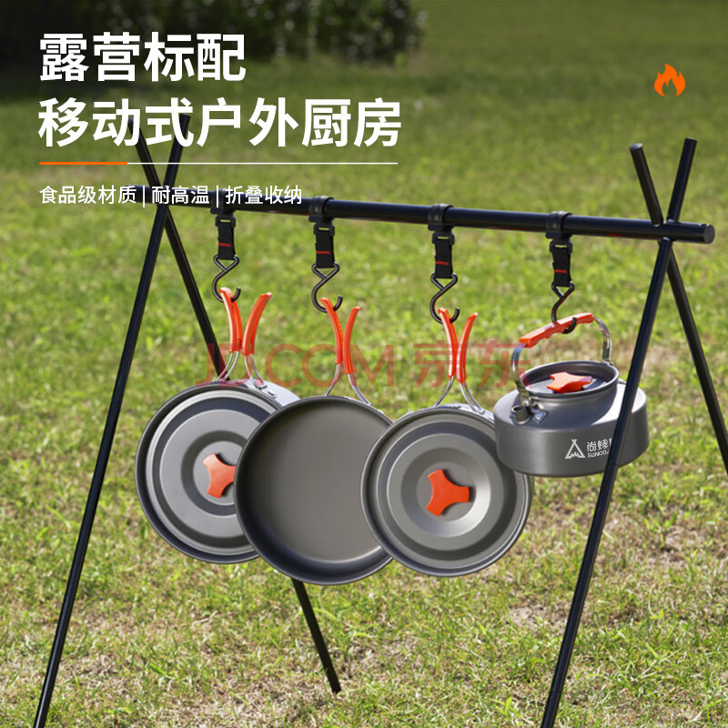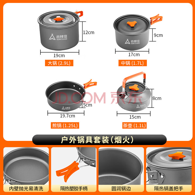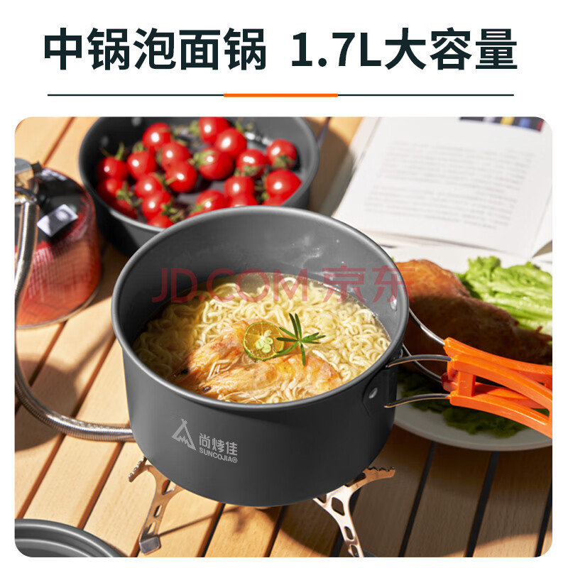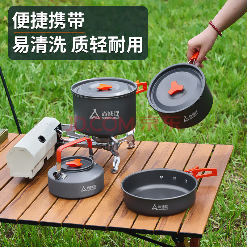商品相册:尚烤佳(Suncojia)野营套锅 户外锅具 野餐炊具 露营自驾锅具 烧水壶 餐具套装 大号第