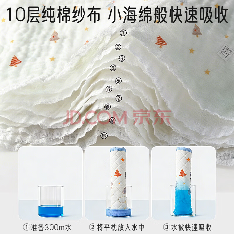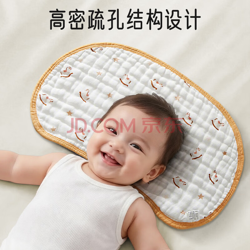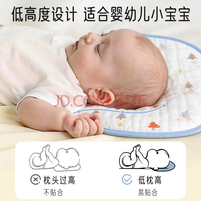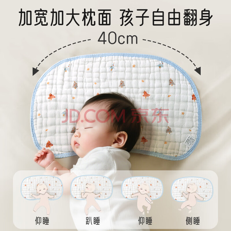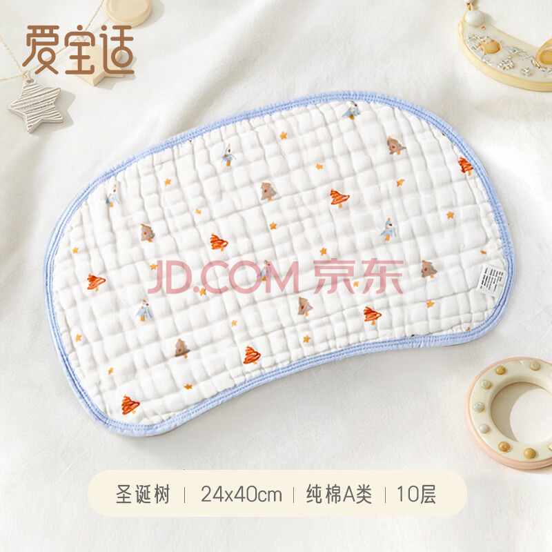 商品相册:爱宝适婴儿云片枕宝宝枕头10层纯棉纱布枕巾新生儿平枕拍嗝巾圣诞树S203第