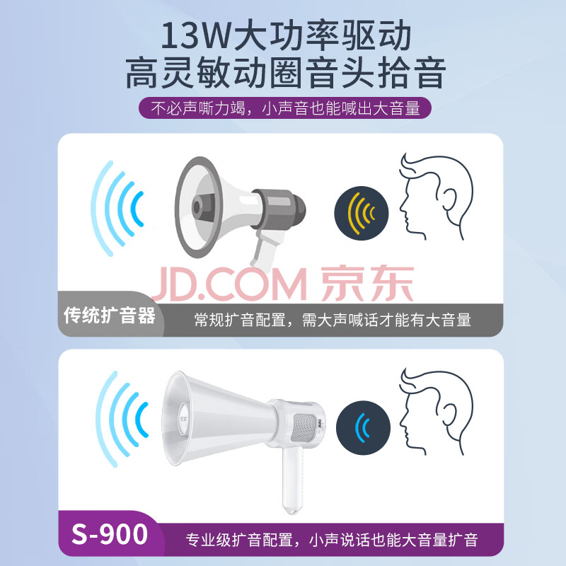 商品相册:索爱(soaiy) S900喇叭扩音器喊话器录音叫卖扬声器13W大功率大声公手持便携式摆地摊蓝牙5.3高音宣传 经典版第