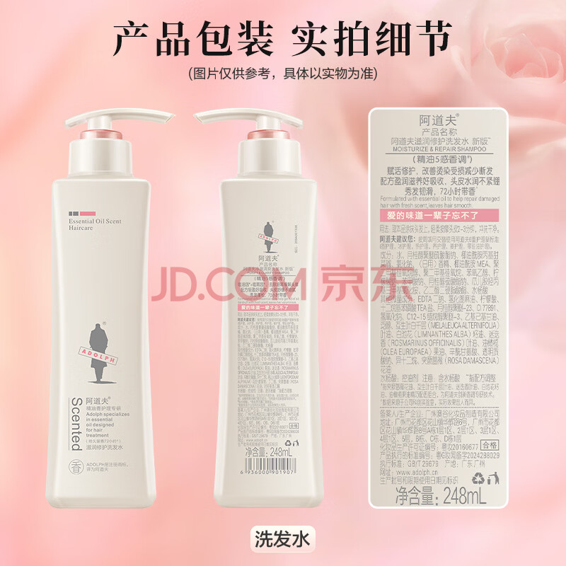 商品相册:阿道夫滋润修护洗发水248ml 水感润养洗发露 精油香氛经典留香洗发乳液第