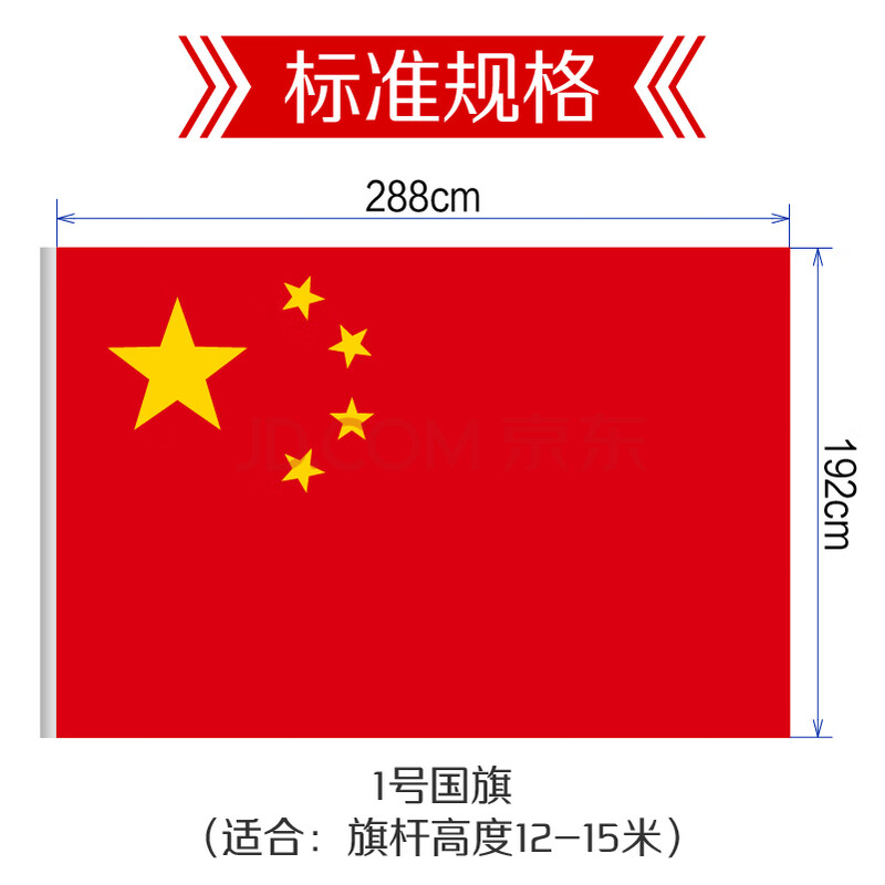 商品相册:优和(UHOO)1号国旗五星红旗 192*288cm 中国国旗 纳米防水防晒国旗户外挂旗国庆节 1面旗帜6191第