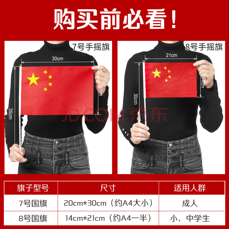 商品相册:优和(UHOO)国庆手持旗小红旗手摇旗国旗小五星红旗小旗子带杆小旗杆 8号小国旗带杆(50面+50杆+32贴纸)6198第