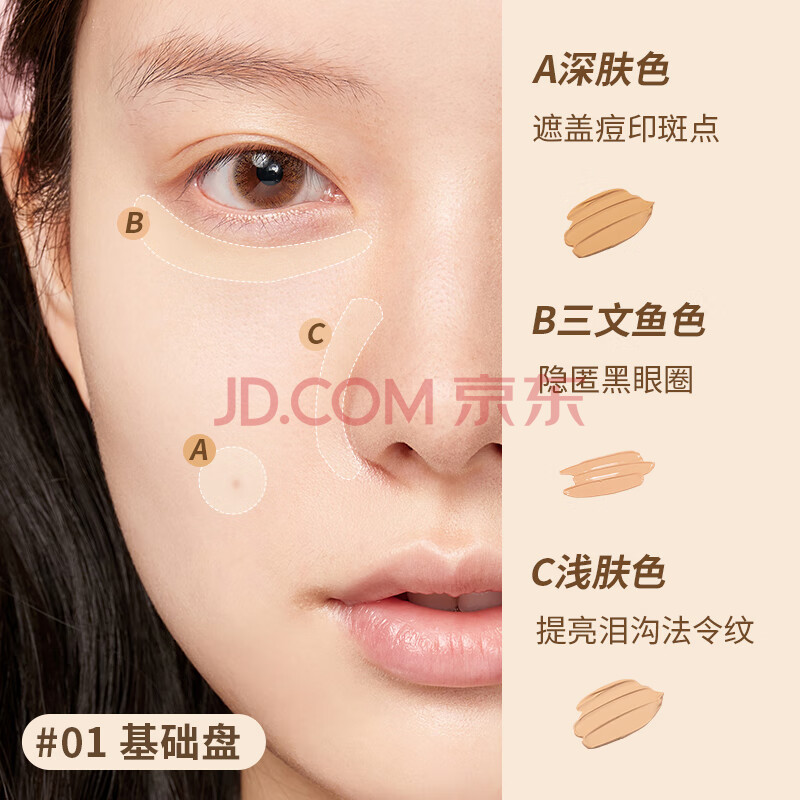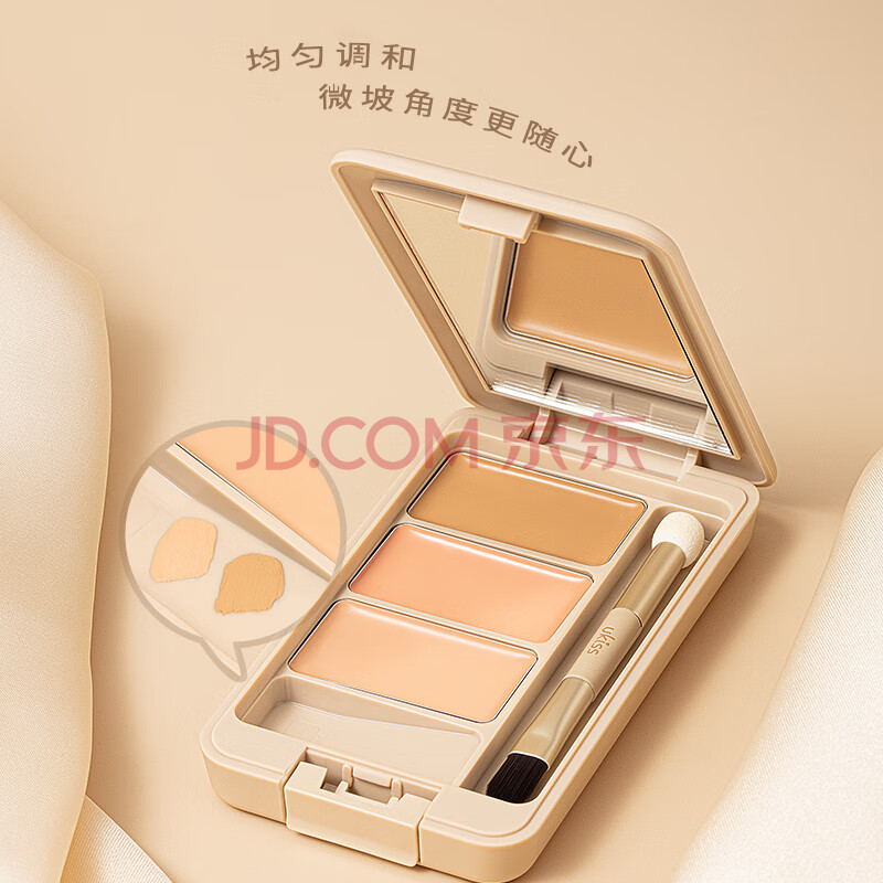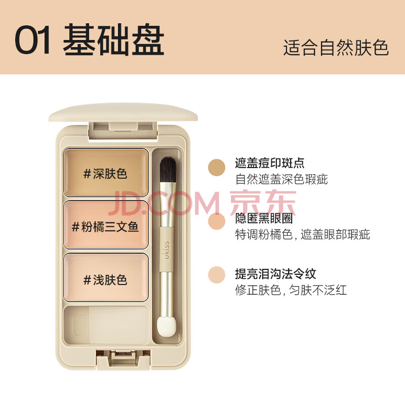 商品相册:悠珂思(ukiss)三色遮瑕膏01基础盘 滋润遮盖斑点修容高光刷粉底提亮液 新年礼物第1张/共9