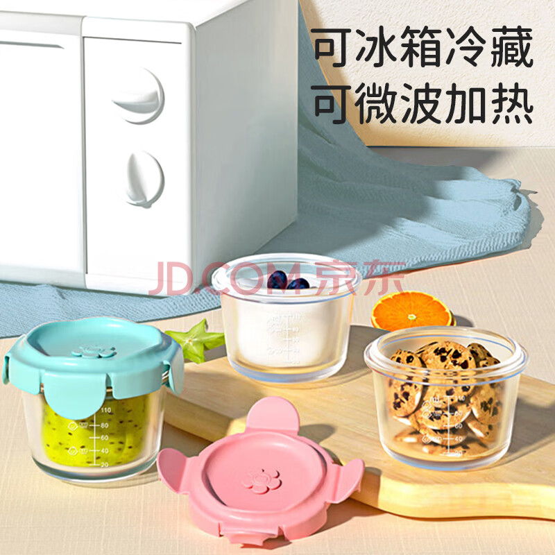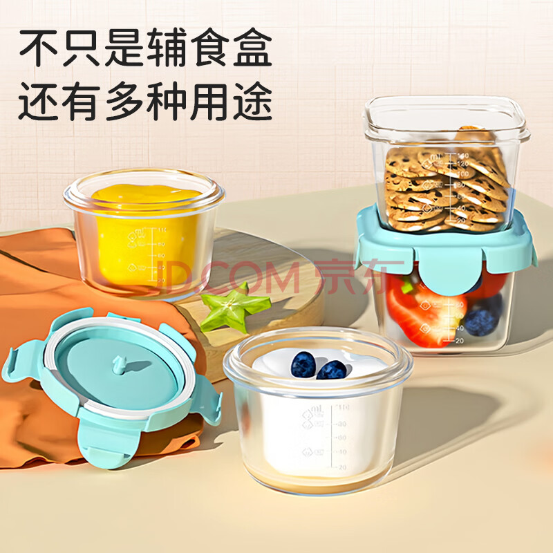 商品相册:葆氏辅食盒玻璃婴儿储存保鲜盒可蒸煮分装盒冷冻密封蛋糕模具160ml*2第