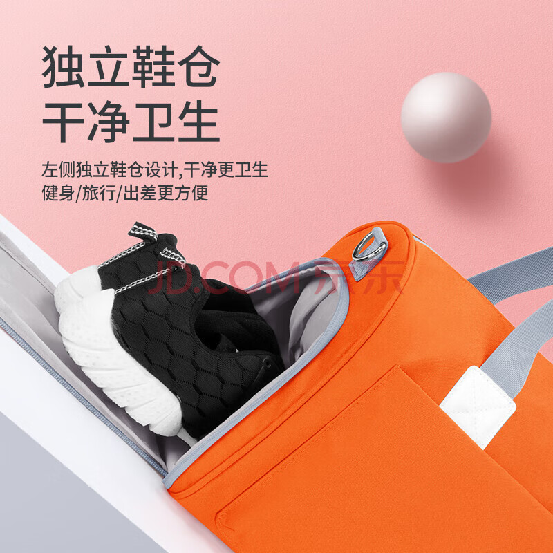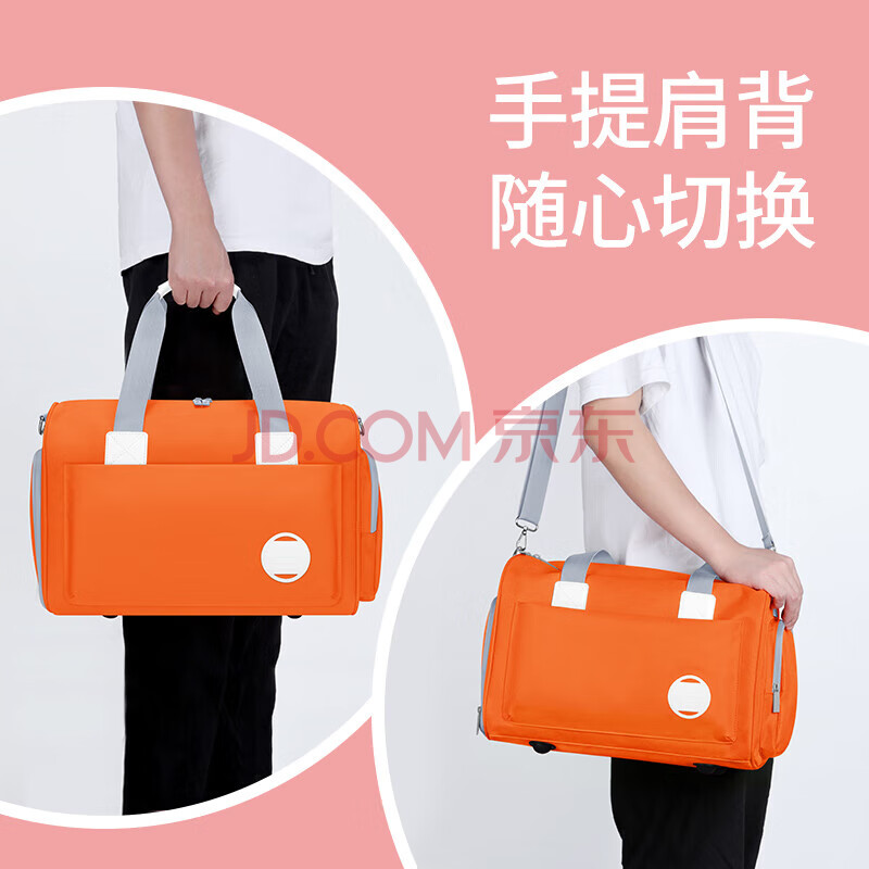 商品相册:必优美 手提旅行包长途旅行女时尚防尘鞋袋干湿分离健身收纳包小号橘色第