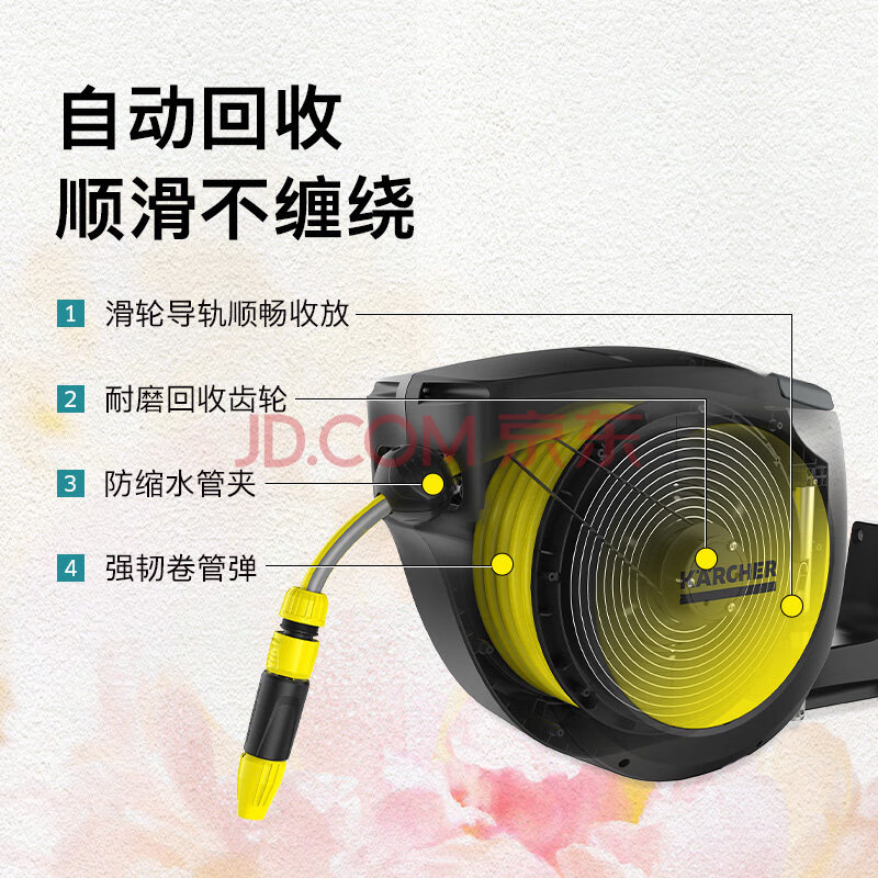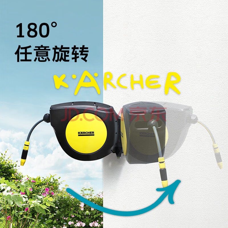 商品相册:KARCHER德国卡赫洗车机浇花水枪园艺灌溉20米水管收纳架自动收管器CR5220第