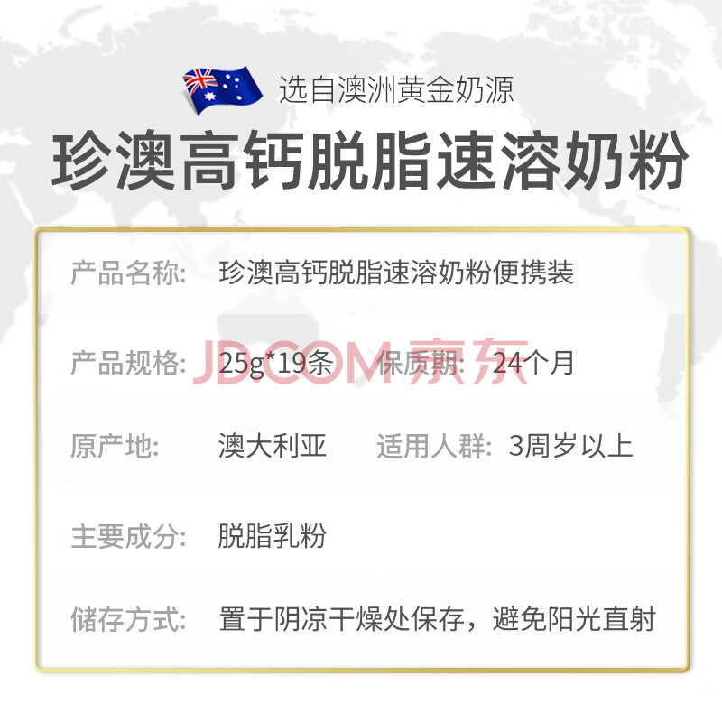 商品相册:珍澳高钙脱脂奶粉475g澳洲进口无蔗糖高蛋白中老年成人奶粉年货送礼第