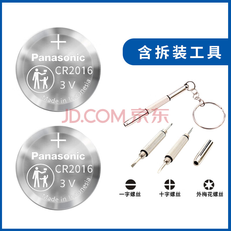 商品相册:松下(Panasonic)松下车钥匙电池套装【CR2016两粒+拆装工具】适用于卡罗拉 花冠 凯美瑞锐志原厂电子10款第