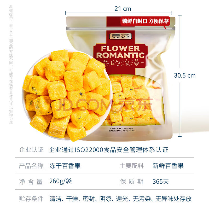 商品相册:贡苑花果茶 优选Vc冻干百香果干260g大份量冷泡水喝的可即食水果茶叶第
