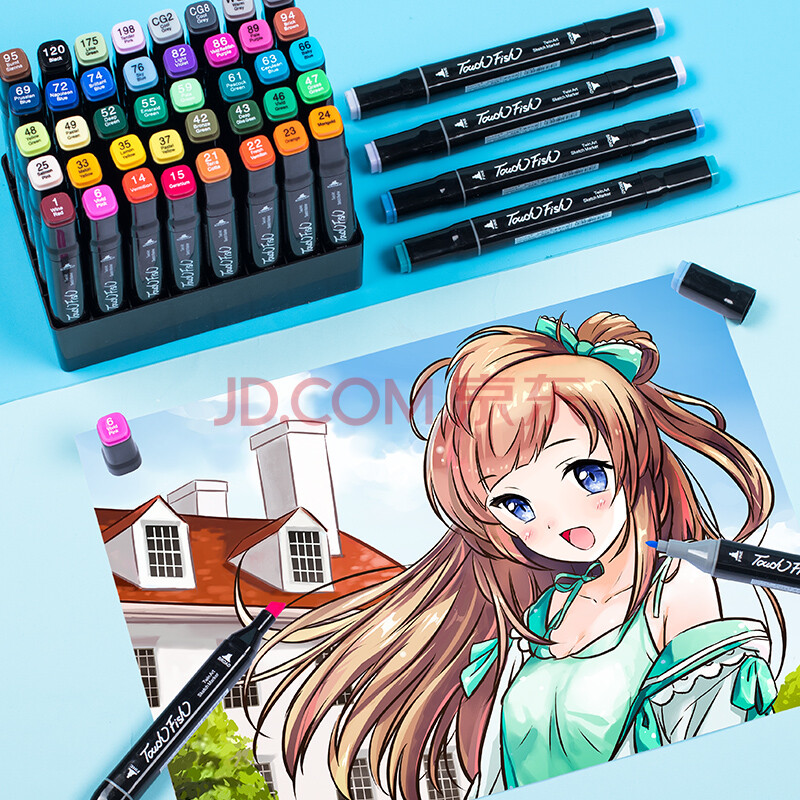 商品相册: Touch Fish马克笔套装双头儿童水彩笔小学生绘画画笔小孩生日礼物 马克笔赠品第1张/共6