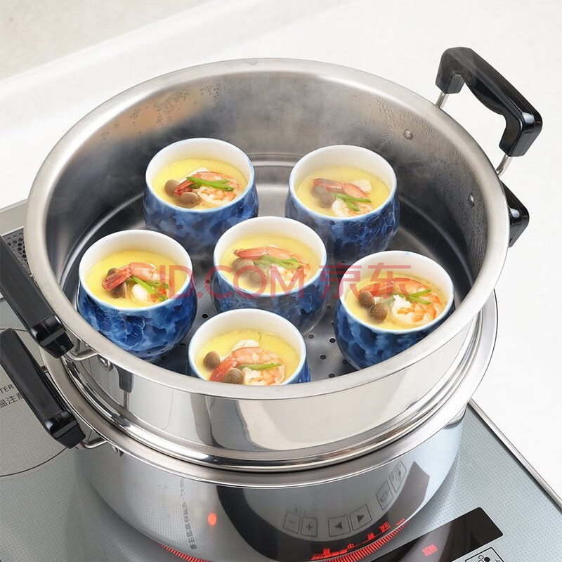 商品相册:YOSHIKAWA 日本原装进口吉川双层蒸锅 28cm 不锈钢汤锅蒸锅 含蒸屉蒸笼 电磁炉燃气灶通用第