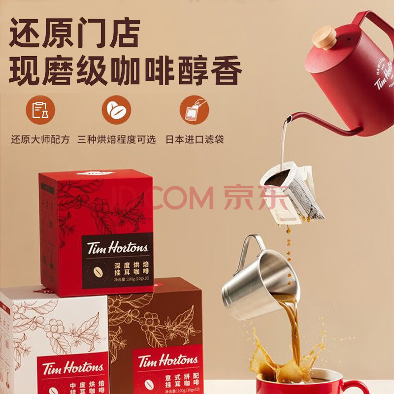 商品相册:Tim HortonsTims挂耳咖啡手冲精品黑咖啡阿拉比卡豆意式浓缩咖啡10g*10片第