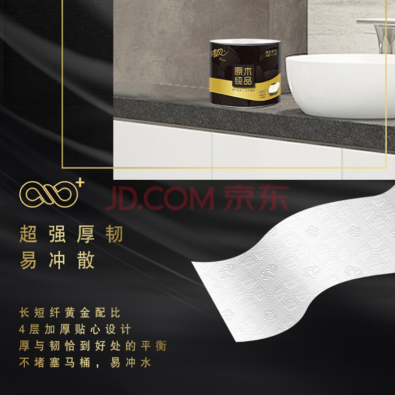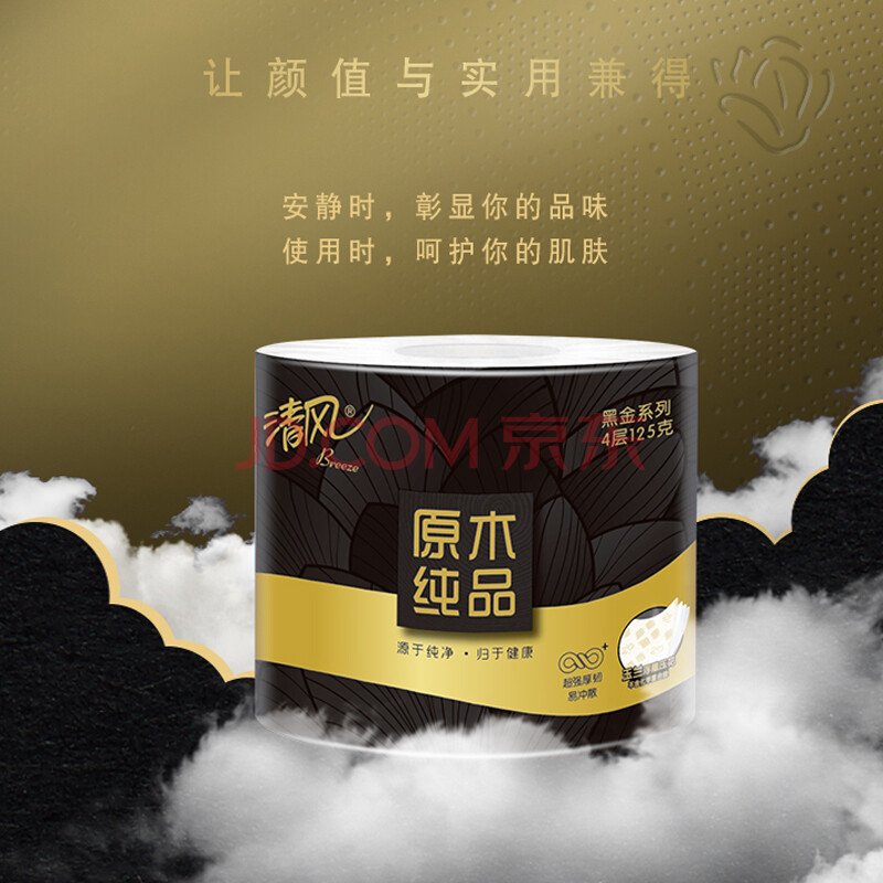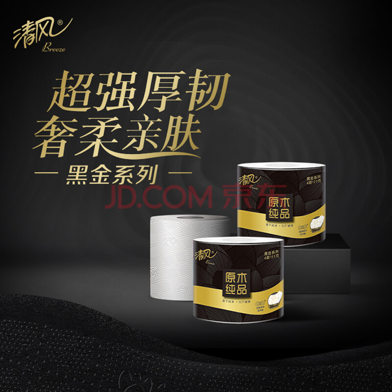 商品相册:清风【李昀锐同款】有芯卷纸 黑金系列4层厚韧125克*27卷 卫生纸第