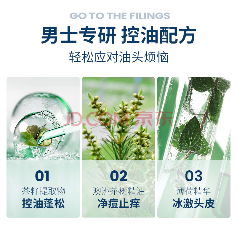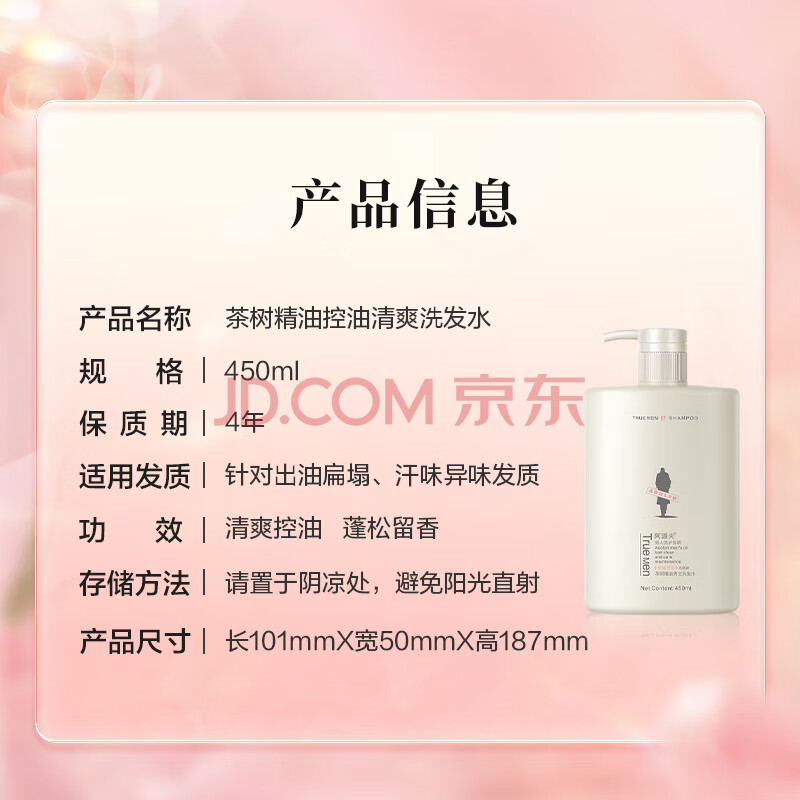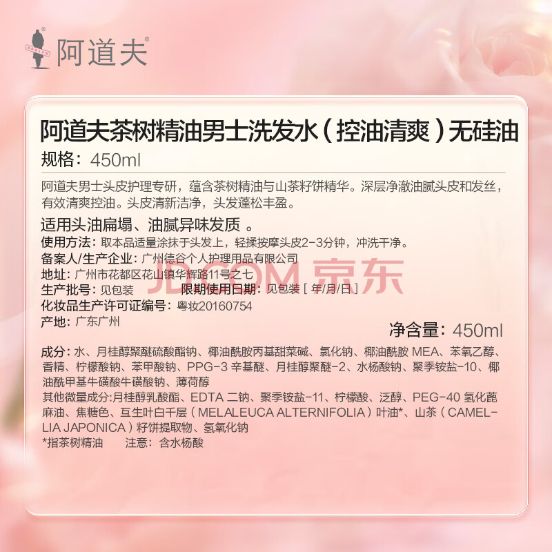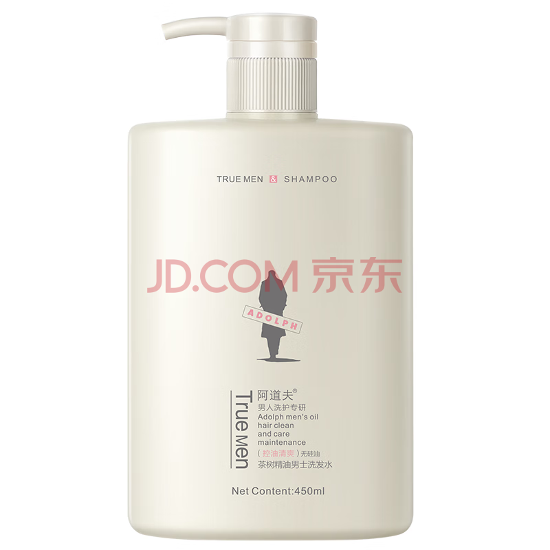 商品相册:阿道夫茶树精油男士洗发水450ml 控油清爽洗发露 无硅油男士专用第