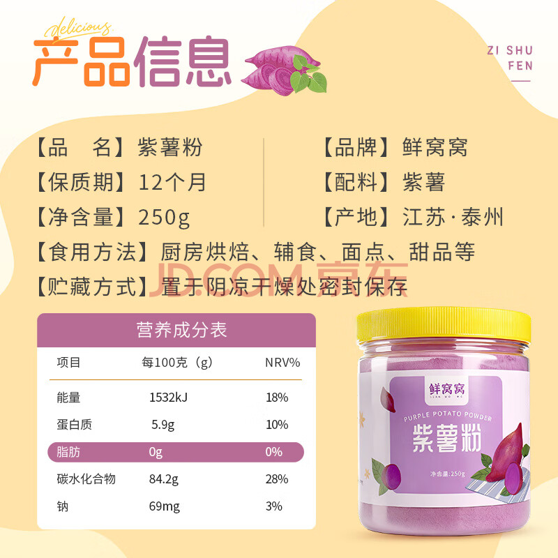商品相册:鲜窝窝紫薯粉250g 纯果蔬粉食用色素彩色汤圆元宵饺子调色粉烘焙原料第