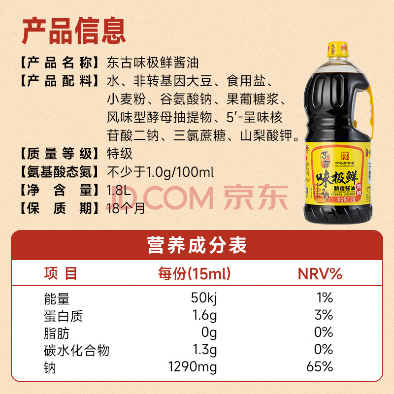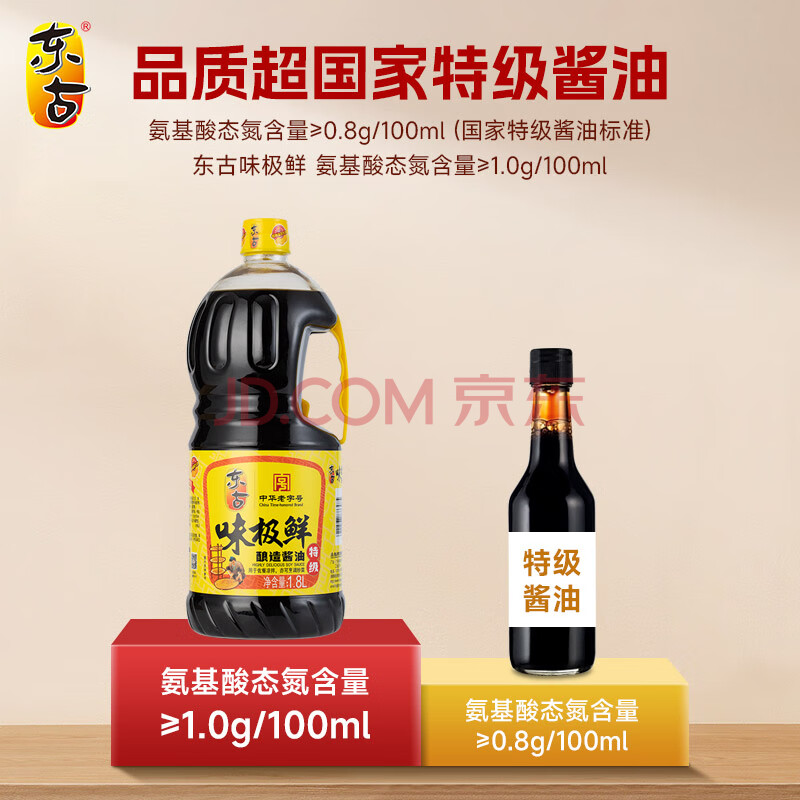 商品相册:东古 味极鲜酱油【特级生抽】1.8L 酿造酱油 炒菜烹调提鲜第