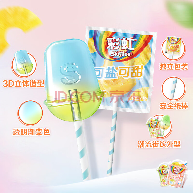 商品相册:绿箭彩虹糖棒棒糖 果茶味54g约5支 水果硬糖 糖果零食 喜糖 儿童糖果第1张/共8