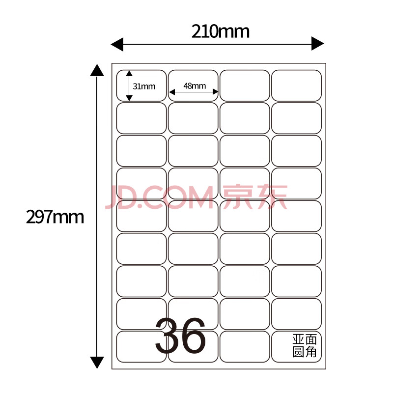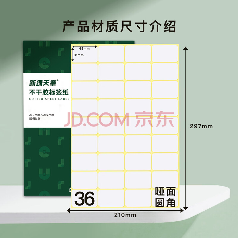 商品相册:天章 (TANGO)A4不干胶标签纸 不干胶贴纸 自粘性标签贴 圆角36枚/张(48MM*31MM) 80张/盒第