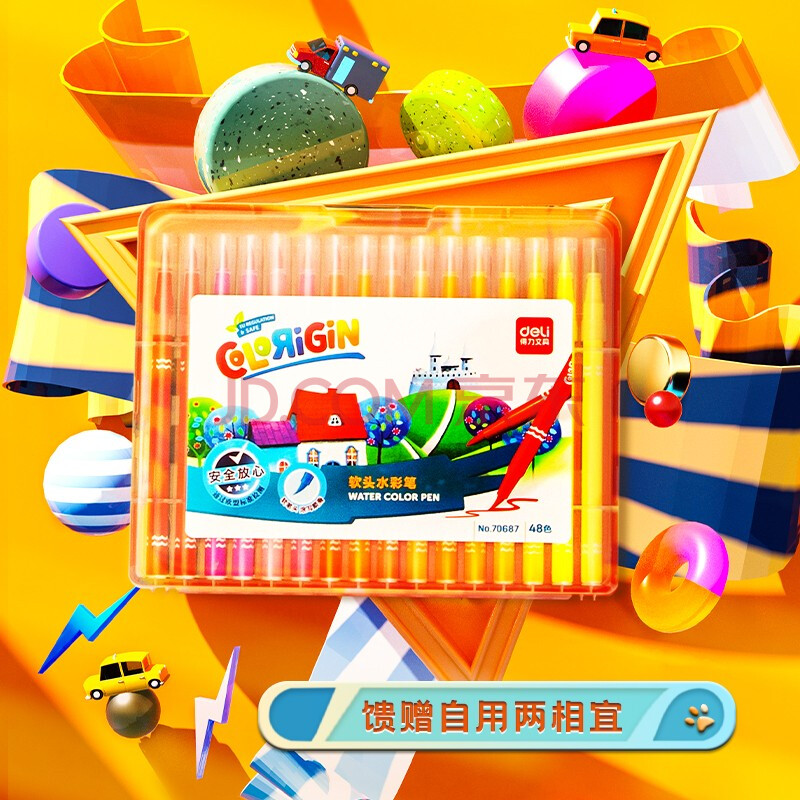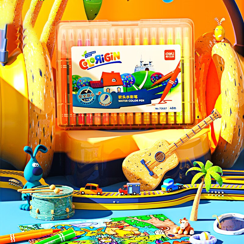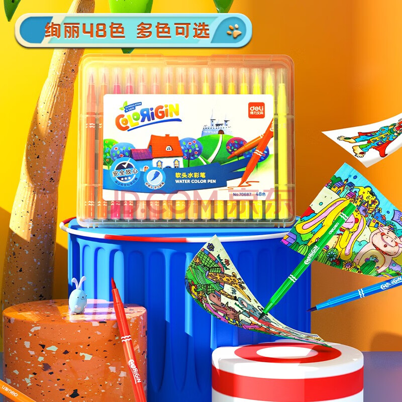 商品相册:得力(deli)48色软头水彩笔勾线漫画插画上色标记水性笔涂色学生儿童绘画画画女孩儿童礼物第