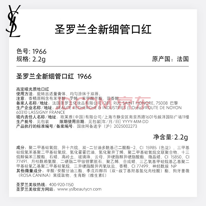 商品相册:YSL圣罗兰小金条口红1966红棕色哑光化妆品生日礼物送女友第