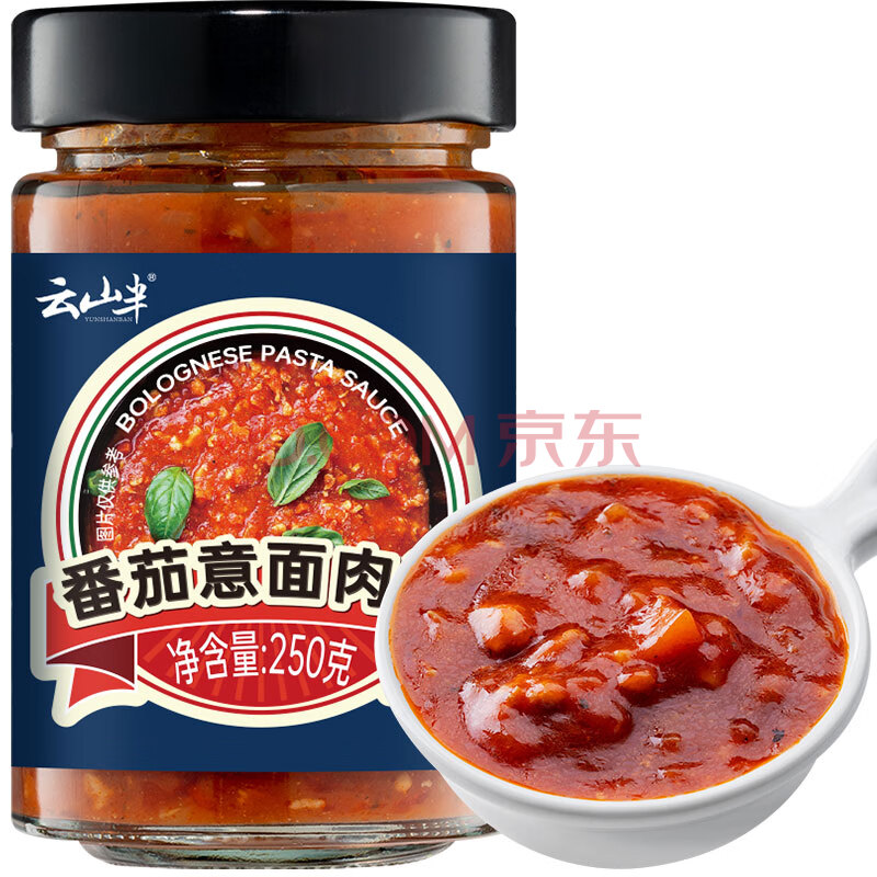 商品相册:云山半番茄意面肉酱250g意大利面酱意粉通心粉拌面酱西餐调味番茄酱第