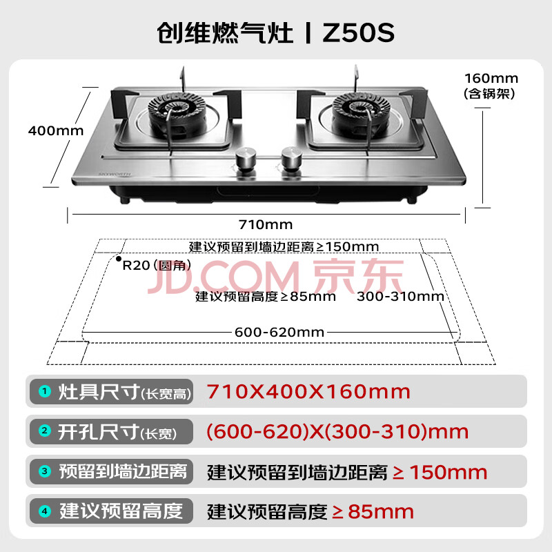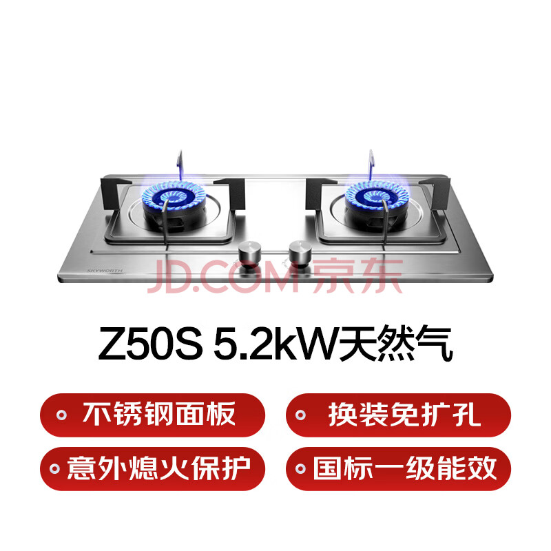 商品相册:创维(Skyworth)燃气灶煤气灶双灶家用 5.2kW天然气嵌入式台式双灶具大火力不锈钢煤气炉 Z50S天第