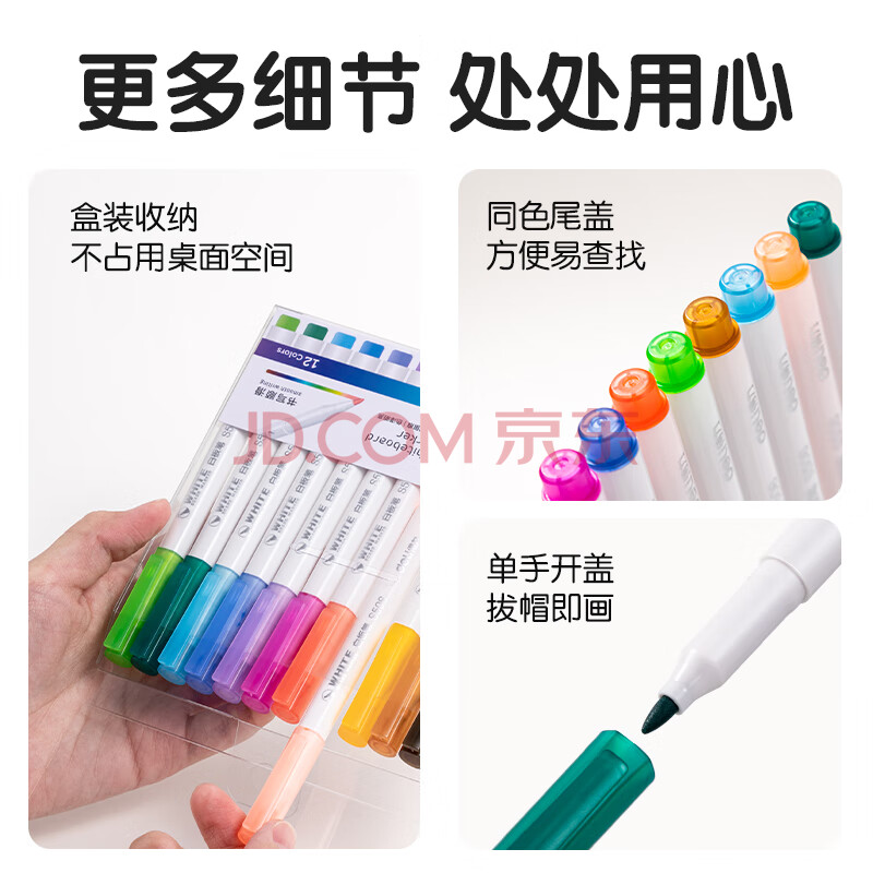 商品相册:得力(deli)儿童彩色可擦白板笔益智学生文具套装 马克笔水彩笔家庭涂鸦绘画 12色 S506 儿童节礼物第