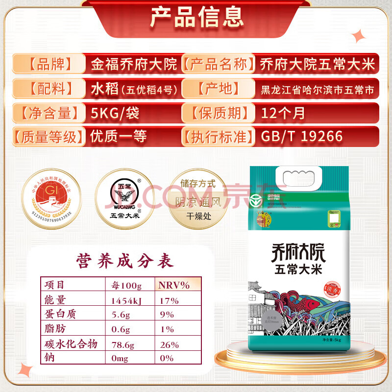 商品相册:金福乔府大院 五常大米 10斤 淡香型 五优稻四号 当季新米第