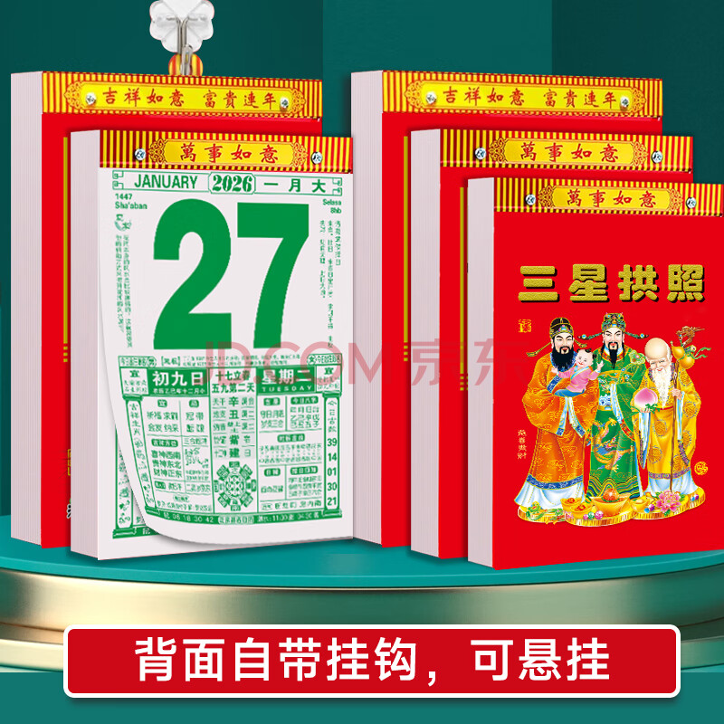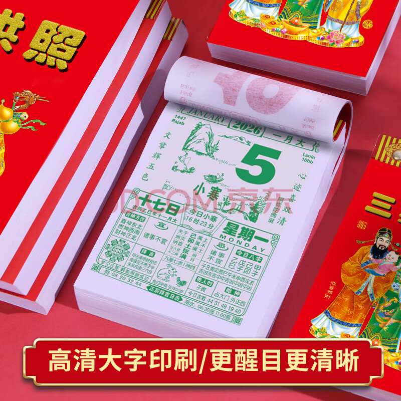 商品相册:优必利 2026年老黄历 16K手撕日历 马年择吉日传统挂墙挂历 一天一页手撕万年历 4854第