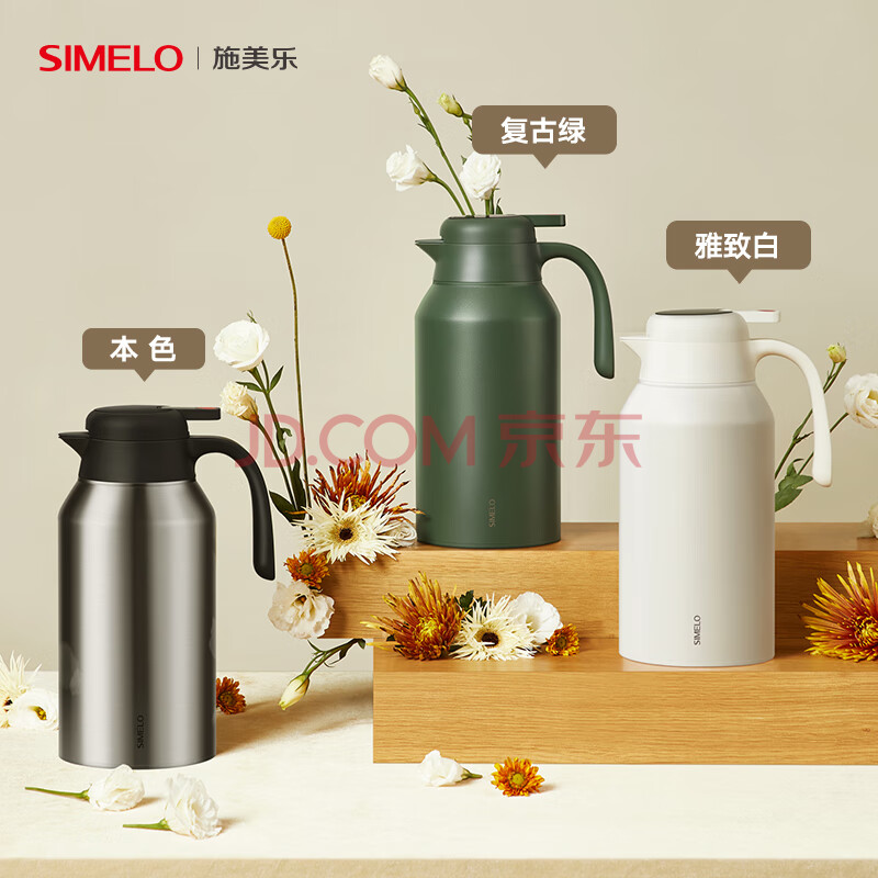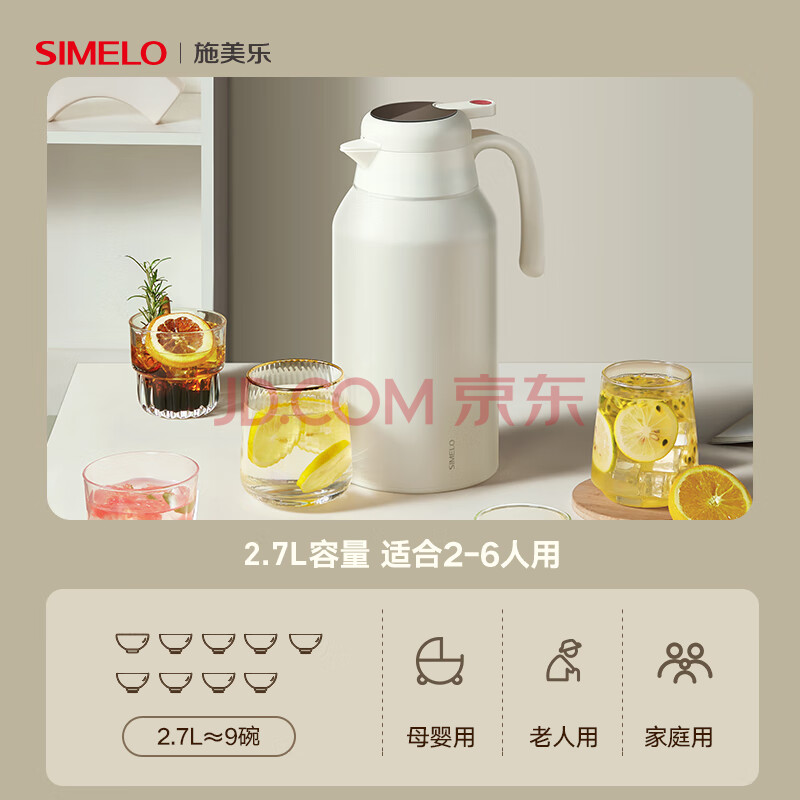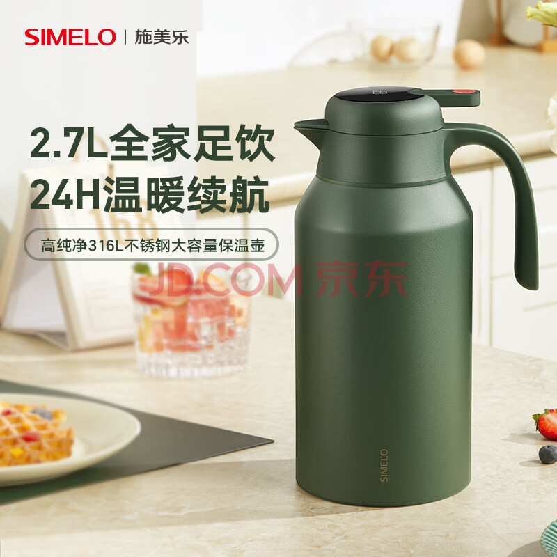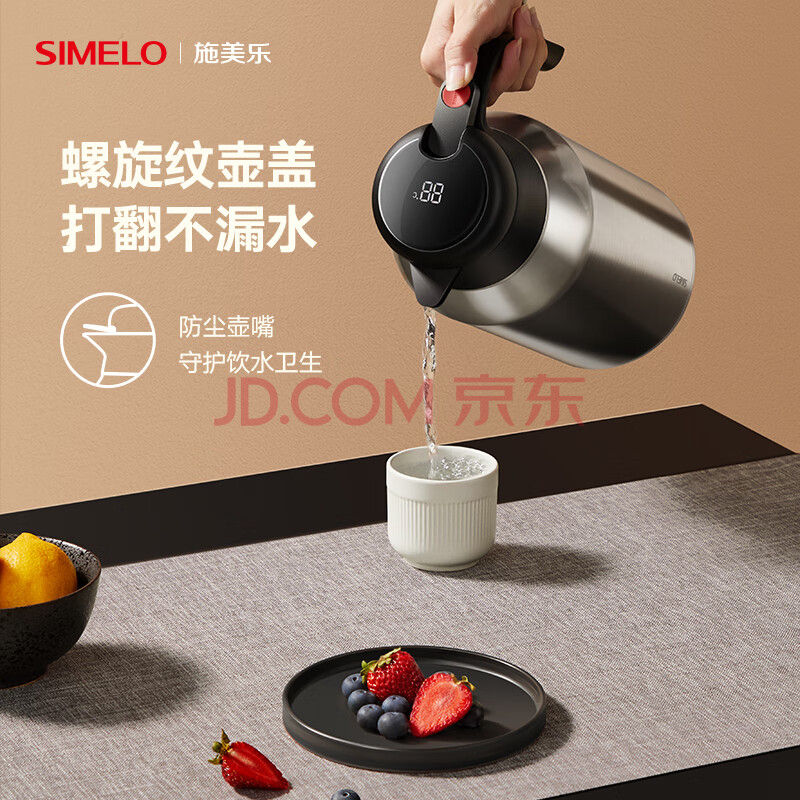 商品相册:SIMELO保温壶智能温显家用暖水壶316L不锈钢热水瓶2.7升红点本色第