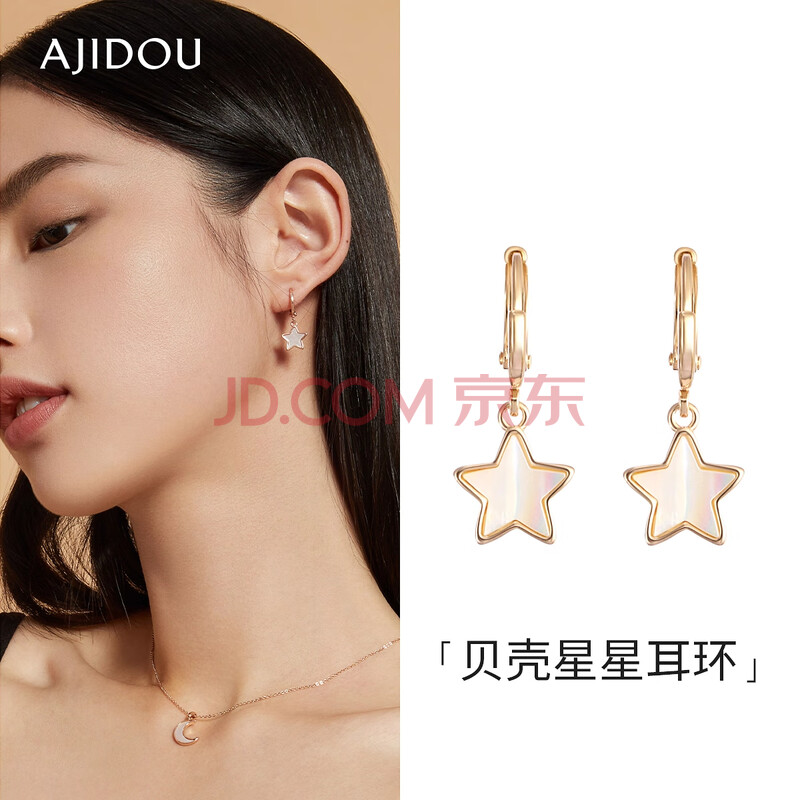 商品相册:阿吉豆耳钉时尚简约星星贝壳耳环显白不撞职场通勤新年礼物送女友女神节第1张/共6