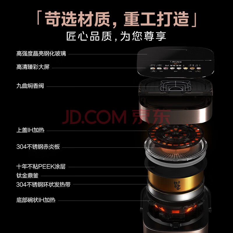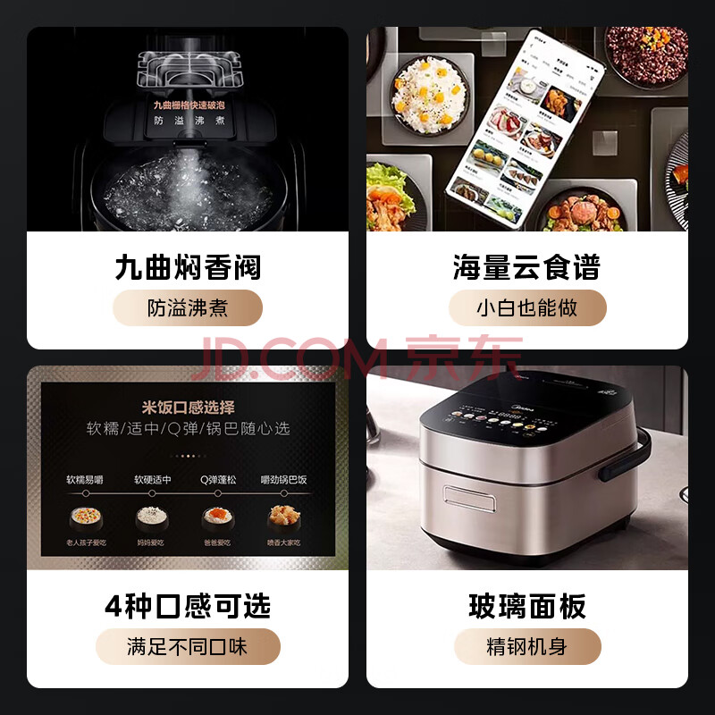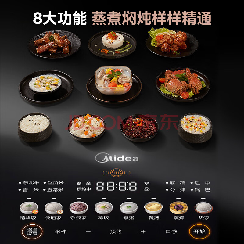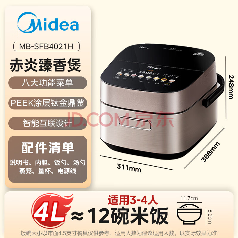 商品相册:美的(Midea)赤炎臻香IH智能电饭煲Pro电饭锅家用4L钛金鼎釜WIFI智控蒸钛釜小米粥米饭锅MB-SFB4021H品牌官方第1张/共8