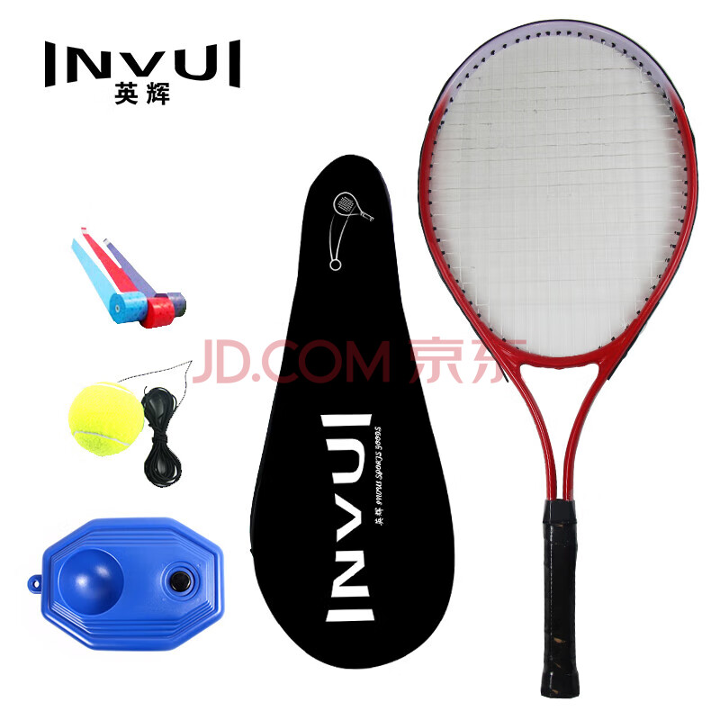 商品相册:英辉(INVUI)网球拍初学者训练拍网球回弹训练器带线网球,手胶,拍包,魅力红第