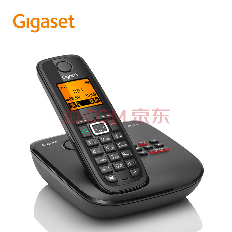 商品相册:Gigaset原西门子无绳电话机 中文菜单录音子母机 无线家用办公固定座机 双向天线信号强E710A单机黑第