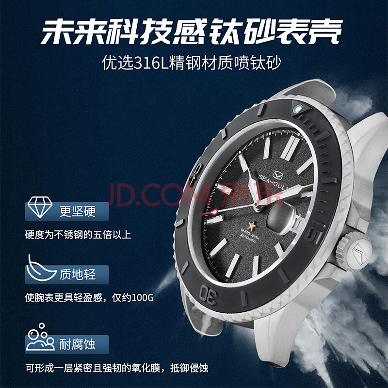 商品相册:海鸥(SEAGULL)手表男士自动机械表 钛砂陶瓷男士手表 生日礼物男表潜水表1207第