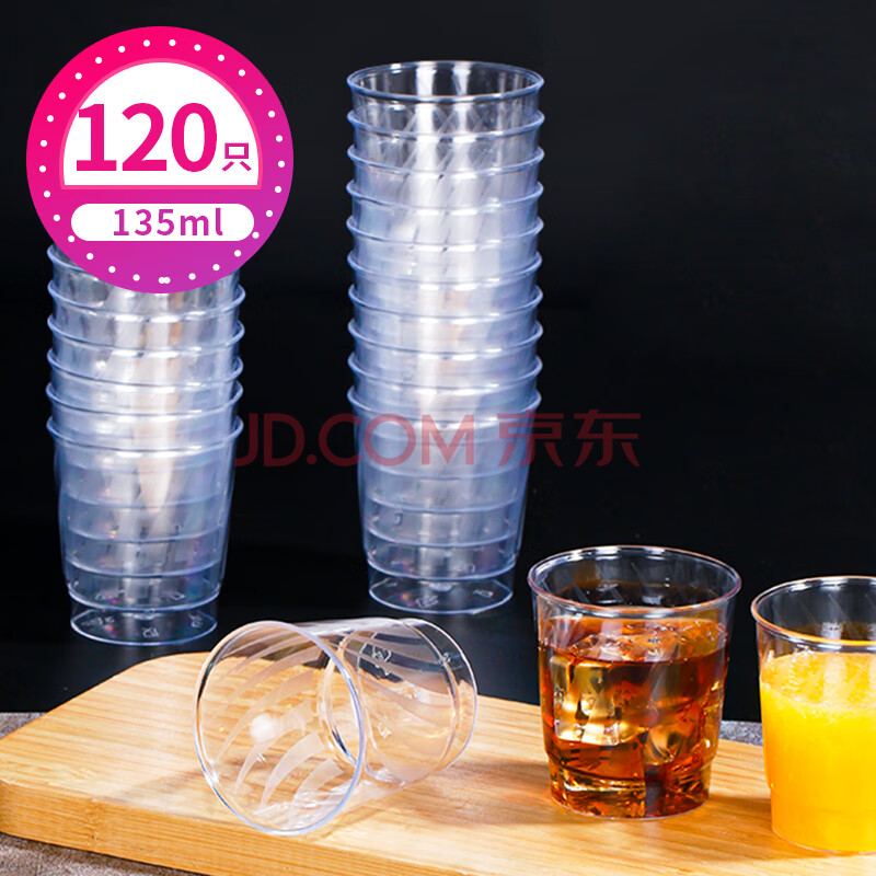 商品相册:SHUANG YU一次性航空杯子135ml*120只加厚塑料杯透明太空杯茶水杯小酒杯第