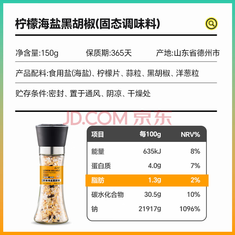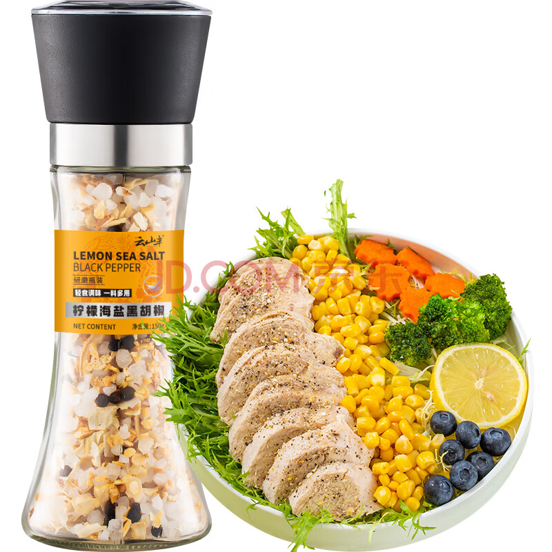 商品相册:云山半低脂肪柠檬海盐黑胡椒粒150g研磨瓶牛排鸡胸肉健身水煮菜西餐调料第