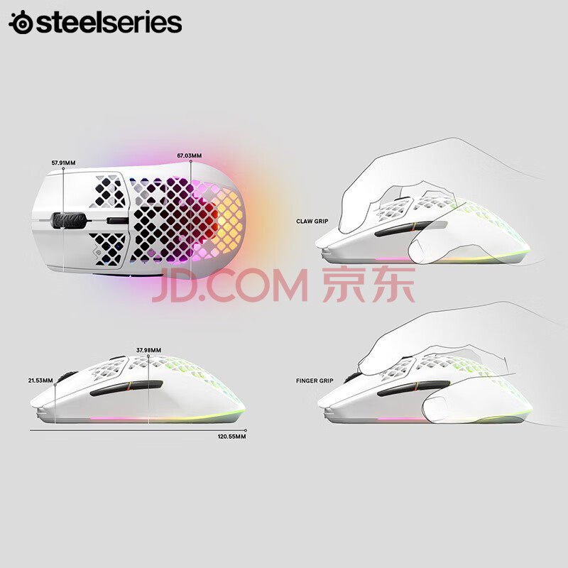 商品相册:赛睿(SteelSeries)Aerox 3 无线/蓝牙游戏鼠标 洞洞鼠镂空鼠标 战队推荐FPS/无畏契约/打瓦专用ipi鼠标 轻量化68g第