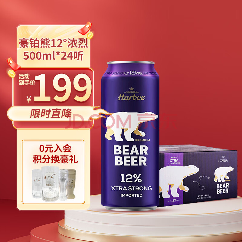 商品相册:豪铂熊(BearBeer)德国精酿12°浓烈啤酒500ml*24听 整箱装 京东自营 春日聚会畅饮第