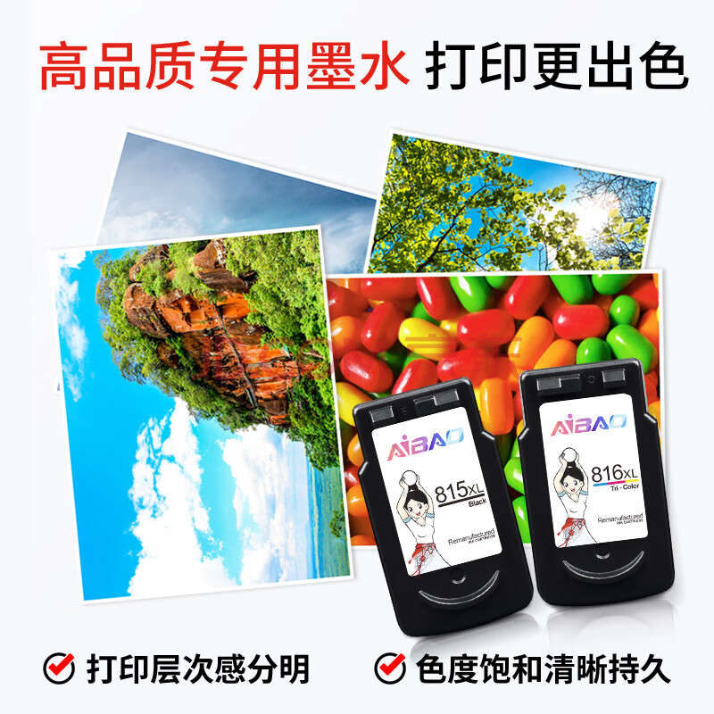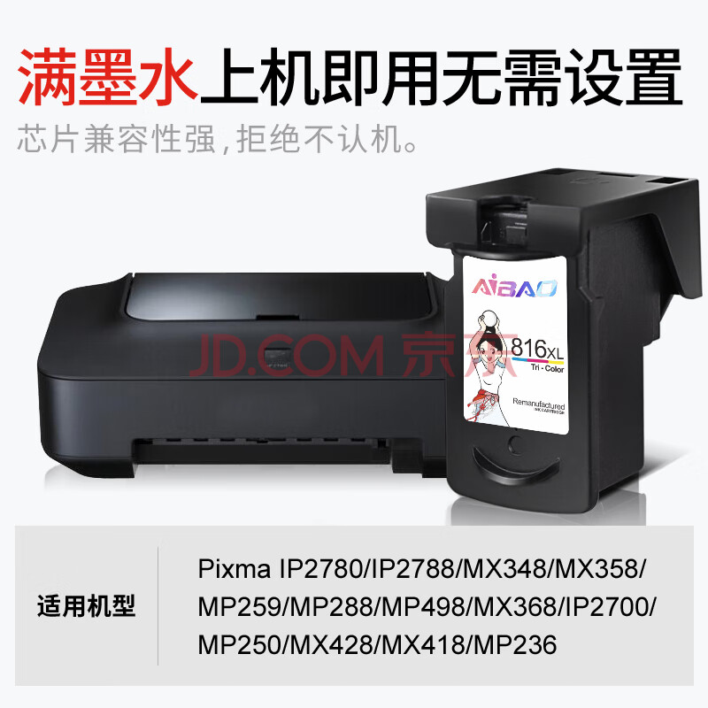 商品相册:艾宝CL-816墨盒彩色 显墨量适用佳能mp288 ip2780 2788 2700 MX348 MX358 MX368 MX418 MX428 815 打印机墨盒第
