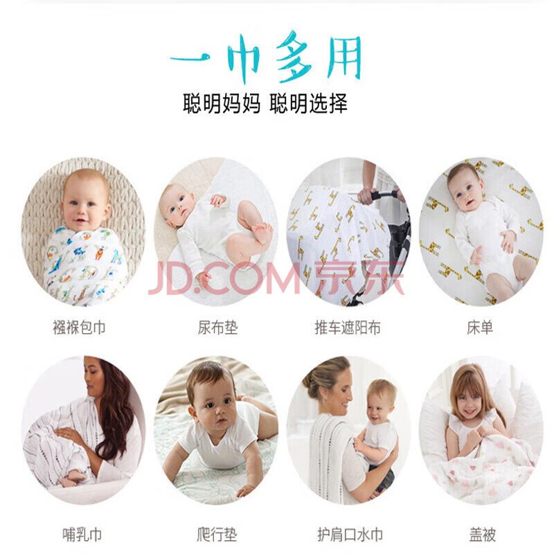 商品相册:9i9婴儿包巾纯棉防惊跳襁褓巾新生儿纱布巾宝宝产房包单抱被子蓝第